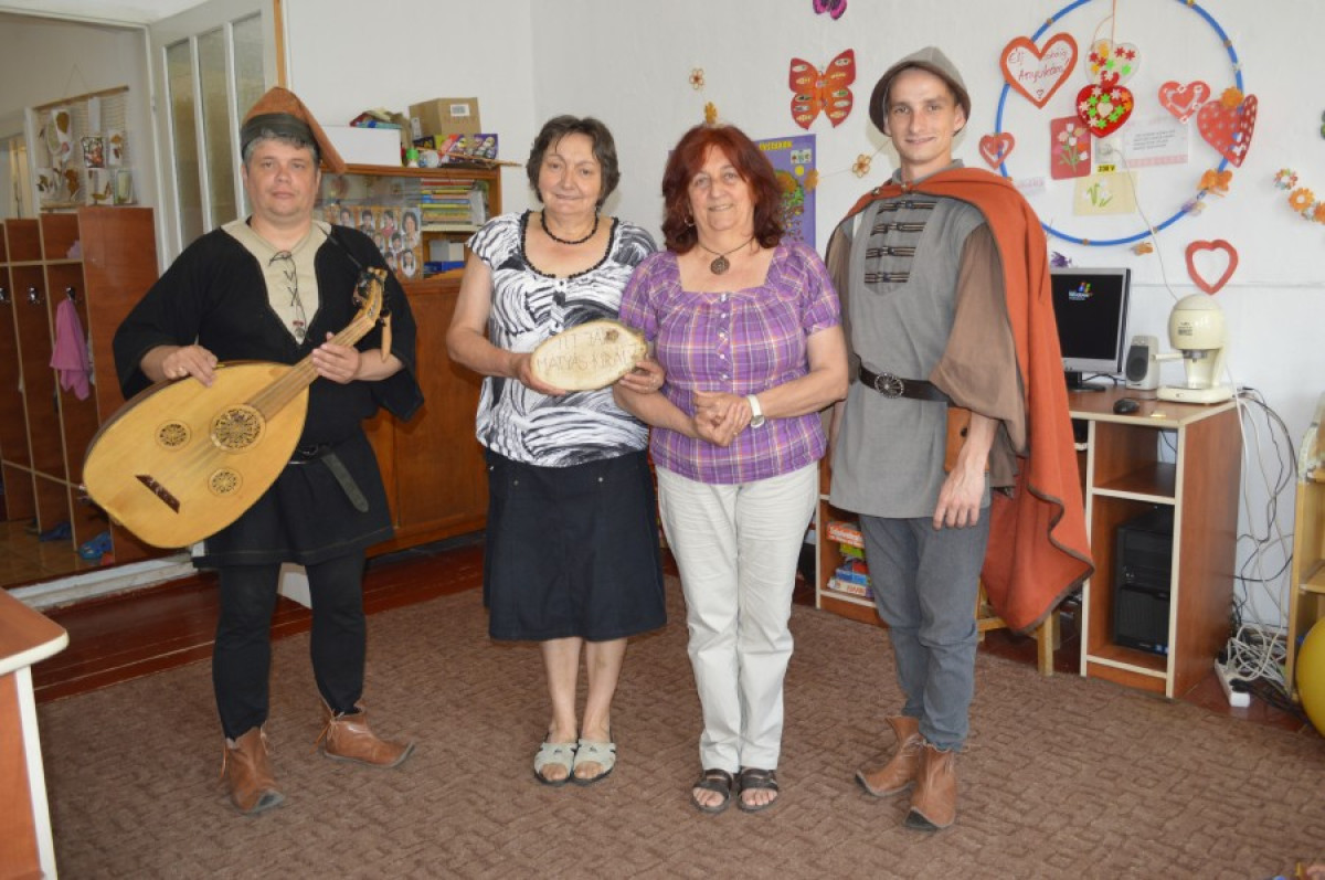 Jakab Erzsébet és Horváth Ildikó óvónénik a meglepetéstől először szóhoz sem jutottak, a gyerekek pedig mind az ablakhoz futottak, amikor meghallották, hogy szerenádszerű zene szűrődik be az udvarról az óvoda épületébe. Nem szerenád volt az, különleges vendég jelezte érkezését ily szokatlan módon a szokatlan dallamokkal: Mátyás király maga és hű lantosa állt az ajtóban, amikor az egyszer csak kinyílt. A király a szívélyes beinvitálás után nem volt rest, leült a kis ovisok mellé a szőnyegre, úgy beszélte el, hogy kicsoda is ő valójában és mi járatban van éppen. Mindezek hallatán a gyerekek erősen elcsodálkoztak, s úgy felengedtek a megszeppenésből, hogy még egy kedves énekkel is megajándékozták a mesék nagy hősét: elénekelték neki a Tavaszi szél vizet áraszt éneket. A kertben a csoportkép elkészítése után pedig, nagyon-nagyon kedvesen, mindannyian kikísérték a vendégeket a kapuig.