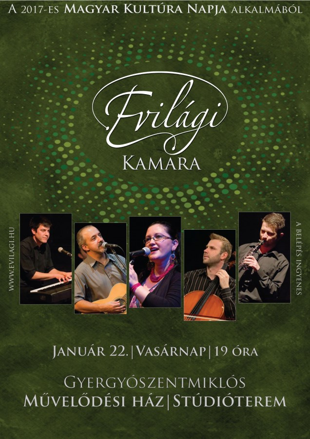A Gyergyószentmiklósi Művelődési Központ idén, január 22-én, vasárnap 19 órától a művelődési ház Bocsárdi Angi Gabriella stúdiótermébe az Evilági Kamara koncertjére várja az érdeklődőket.