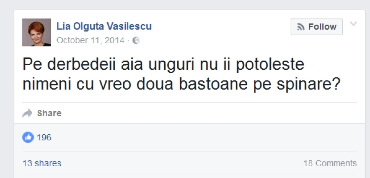 Lia Olguta Vasilescu nem túl magyarbarát beszólása a facebookon (fotó: transindex.ro)