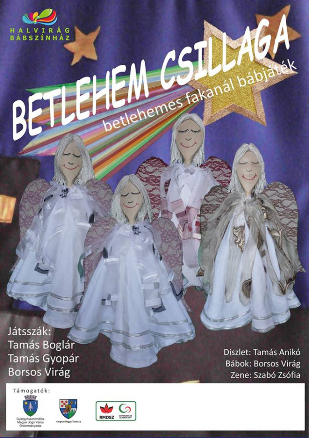 A karácsonyi betlehemes játékokat feldolgozva mutatja be a HalVirág Bábszínház a Betlehem Csillaga előadását Gyergyóditróban két helyen, december 12-én, szerdán a kőhidi iskolában és december 14-én, pénteken az Eszterlánc napközi otthonban, Gyergyóalfaluban december 17-én, hétfőn a kultúrházban, és Gyergyóújfaluban december 18-án, kedden az Elekes Vencel Általános Iskola dísztermében. Az előadások mindenhol délelőtt 9 órakor kezdődnek.