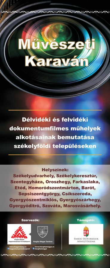 A Művészeti Karaván elnevezésű program célja délvidéki és felvidéki dokumentumfilmes műhelyek alkotásainak bemutatása székelyföldi településeken április és május hónapok során. Gyergyószárhegyen a következőket vetítik: „Ahonnan elindultam…“ Batta György (25 perc, rendező: T. Nagy Imre, operatőr: Nagy István, vágó: ifj. Nagy Imre, zene: Horňák Marek és Dominika Gurbaľová, 2016, Bódva-völgyi Stúdió, Szepsi), Dél-szlovákiai múzeumok (30 perc, rendező: T. Nagy Imre, operatőr: Nagy István, vágó: ifj. Nagy Imre, zene: Viszlai Tibor, 2014, Bódva-völgyi Stúdió, Szepsi). A vetítést közönségtalálkozó követi a szepsi (Szlovákia) Bódva-völgyi Stúdió alkotóival..