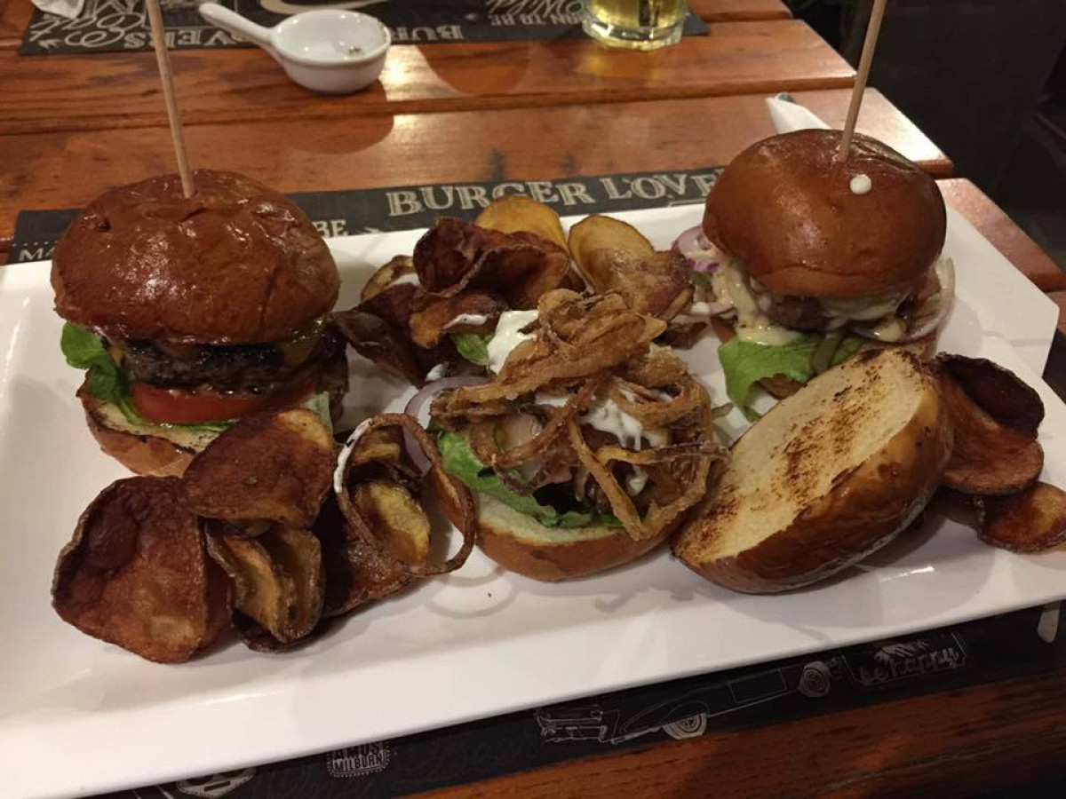 – Angus marhahúspogácsa, sörös buciban, saját szószaikkal ízesítve, római sali, paradicsom, ír cheddar sajt, fekete-erdei sonka, calvadosban érlelt libamáj, sült alma, szarvasgomba pesztó, sáfrányos majonéz, burgonyachips.