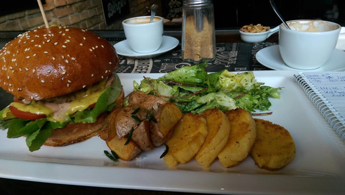 – Bárányhúspogácsa, szarvasgombás buci, római sali, paradicsom, ír cheddar sajt, fekete-erdei sonka, kecskesajt, humusz, mentás joghurt, szömörcés steakburgonya.