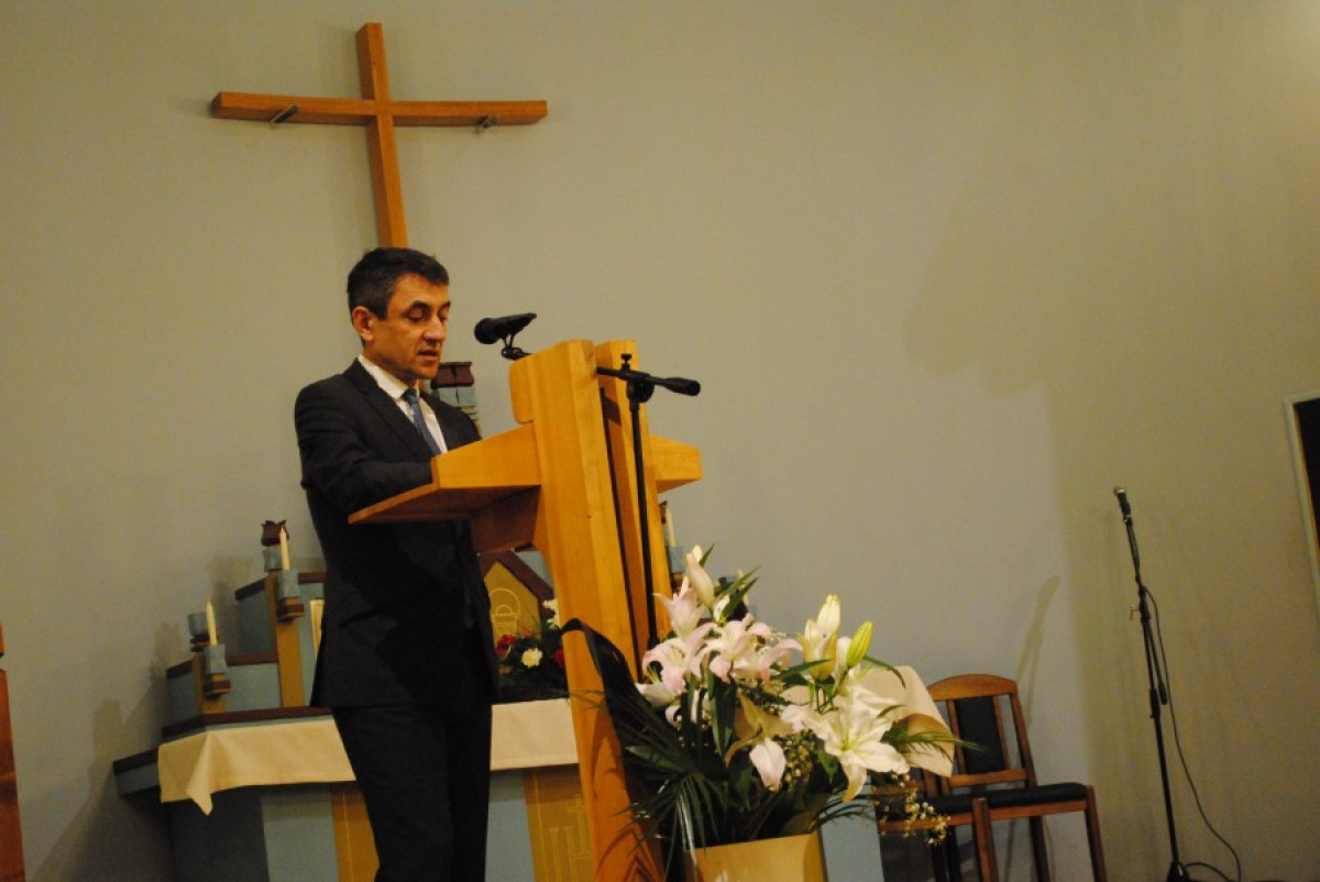 – Ezekkel a gondolatokkal kezdődik Márton Áron első püspöki körlevele, és az a 41 éves út, amely során Márton Áron nemcsak a gyulafehérvári püspökség, de az erdélyi magyarság, s egyben az egész magyar nemzet sorsát a vállára vette. Ebben a feladatvállalásban egyszerre volt alázat és bátorság, határozottan, és az Úrban bizakodva állt neki a munkának. A nagy szellemeknek ez a kettős jellemvonása egész életében elkísérte. Márton Áron az egyszerű emberek nyelvén értett és beszélt, nem fáradt meg a gyülekezetek, az iskolák, a közösségek látogatásában. Azt írják róla, hogy munkája során nem szégyellte kikérni a társadalom világi kutatóinak, a szakértőknek a véleményét, népszerűségét szerény visszafogottsággal viselte. Életpéldájában nagy szerepe van Szent István intelmeinek, ami így hangzik: semmi sem emel fel, csakis az alázat, és semmi sem taszít le, csakis a gőg. Biztos vagyok benne, hogy ha itt lenne köztünk, Márton Áron ma is alázattal, szelíden, a szeretet hangján szólna hozzánk, intve és tanítva minket arra, hogy sohse tekintsük magunkat értékesebbnek felebarátainknál. Márton Áron igazi nagyságát az adja, hogy nem félt kimondani az igazságot, pedig egy olyan korban élt, amikor nagyon kevesen merték megtenni ezt. A legnehezebb időszakban kezdte meg munkáját, amikor világrendek törtek össze, családok szakadtak szét, s amikor az egyházi rendeket nem illetett kitüntetés. Márton Áron egyszerre harcolt értünk és az igazságért. Tartozunk neki azzal, hogy ne merüljön feledésbe, ne tűnjön el mindaz, amit hátrahagyott nekünk. A nemzetpolitikai államtitkárság ezért hirdette meg a Márton áron emlékévet. Örülök, hogy Áder János köztársasági elnök, és Jakubinyi György érsek vállalták a fővédnökséget. Az év során további konferenciák, kiállítások és iskolai vetélkedők segítenek felidézni és újragondolni Márton Áron tevékenységét. Ehhez azonban csak akkor maradhatunk hűek, ha vállaljuk azt az örökséget, amit ő reánk hagyott. Ha nem hallgatunk, hanem bátran felszólalunk hitünk és nemzetünk megtartása érdekében. Erről is tegyünk fogadást, amikor emléke előtt meghajlunk – zárta gondolatait Potápi Árpád János.