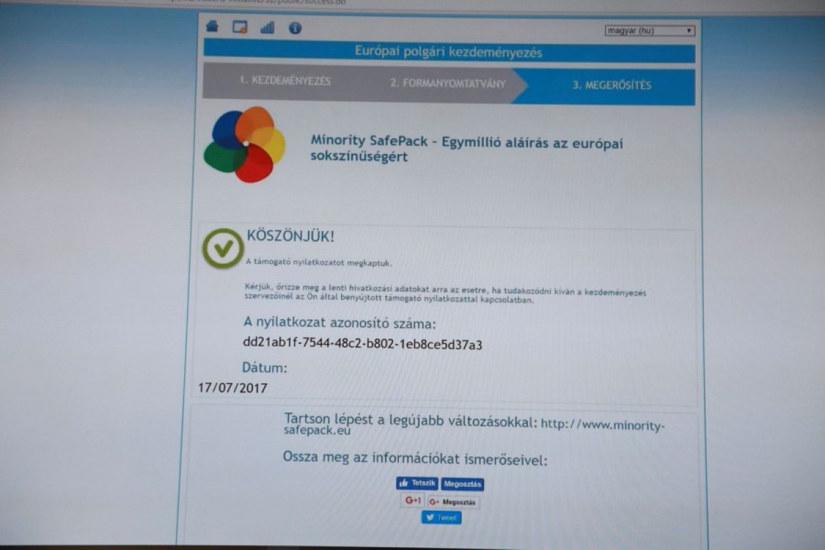 A MSPI-et az RMDSZ az európai kisebbségek legnagyobb ernyőszervezetével, a FUEN-el közösen, a Dél-tiroli Néppárttal együtt kezdeményezte 2013-ban. Kelemen Hunor lemondott miniszterelnök-helyettesi tisztségéről, amikor a román kormány beszállt az Európai Bizottság oldalán a kezdeményezők által indított nemzetközi perbe. Idén májusban a FUEN (Európai Nemzetiségek Szövetsége), Európa legnagyobb kisebbségi szervezeteket tömörítő szövetségének kolozsvári kongresszusán, Bonchidán indult el ünnepélyes keretek között a nemzetközi aláírás-gyűjtés.