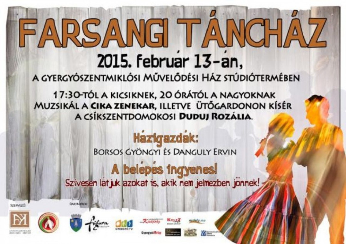 Kicsiknek és nagyoknak!Február 13-án, a Gyergyószentmiklósi Művelődési Ház stúdiótermében 17.30-tól a kicsiknek, 20 órától a nagyoknak muzsikál a Cika Zenekar, illetve ütőgardonon kísér a csíkszentdomokosi Duduj Rozália.
