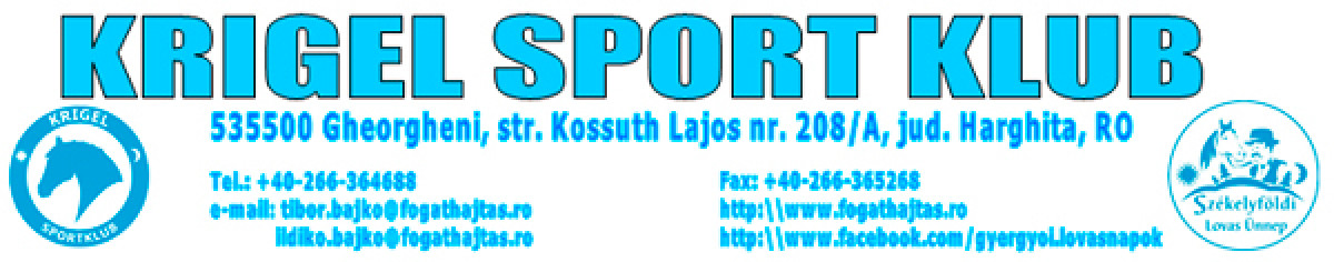 A Krigel Sport Klub az idén is szeretettel meghívja Önt és jószágát a VIII. Székelyföldi Lovas Ünnep keretén belül megszervezett LÓSZEMLÉRE.
