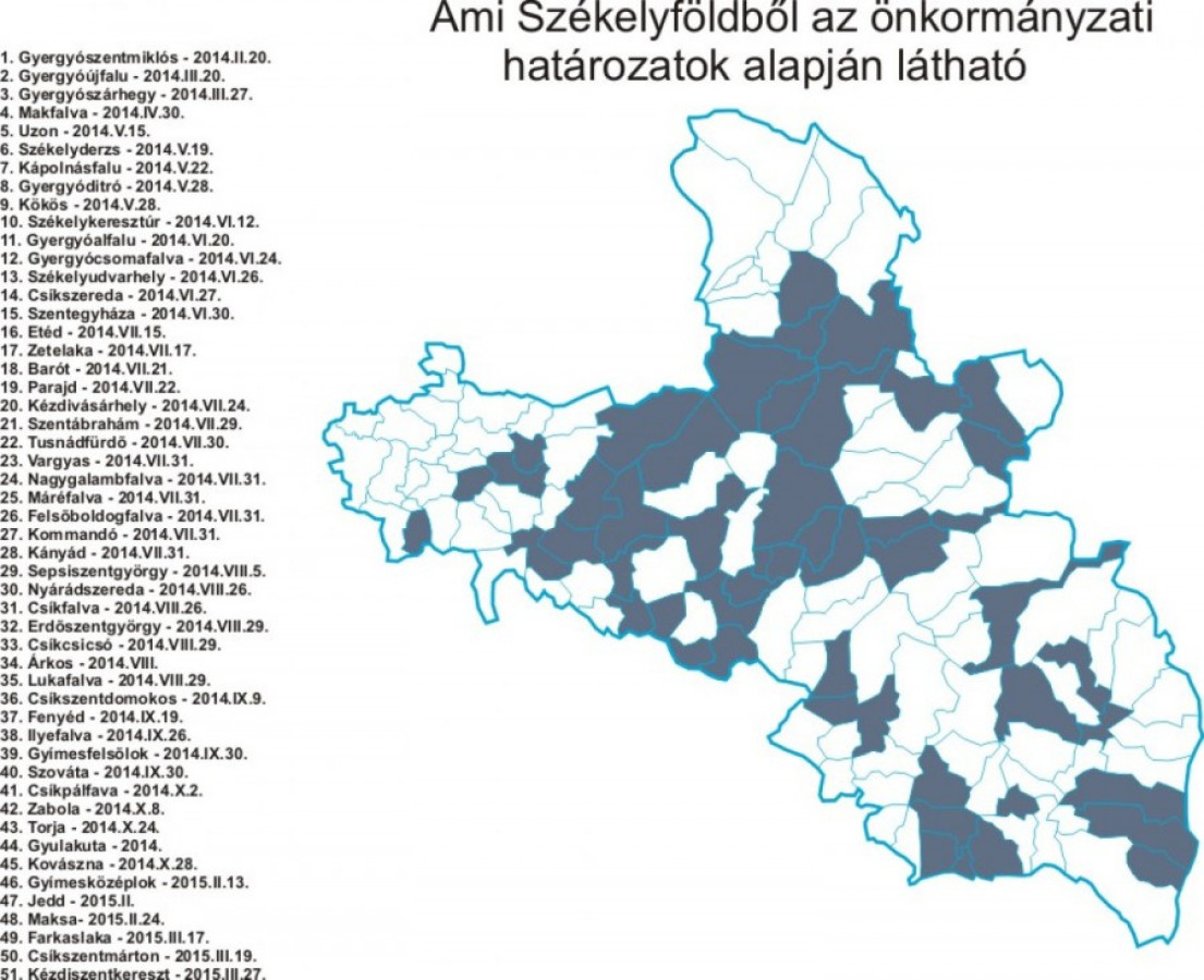 Ahhoz, hogy közösségi akarat rajzolja ki Székelyföld térképét, hogy szilárd hivatkozási alapunk legyen az autonómia igénylésében, a közös fellépésben Románia tervezett közigazgatási átszervezése ellen, a többi 102 önkormányzatnak is el kell fogadnia a határozatot! Azt követően el kell küldeni azt Románia kormányának és parlamentjének, az Európa Tanács főtitkárának, a Regionális és Helyi és Regionális Önkormányzatok Kongresszusának, a Régiók Bizottságának, az Európa Tanács Parlamenti Közgyűlésének, az Európai Parlamentnek és az ENSZ Emberjogi Tanácsának.