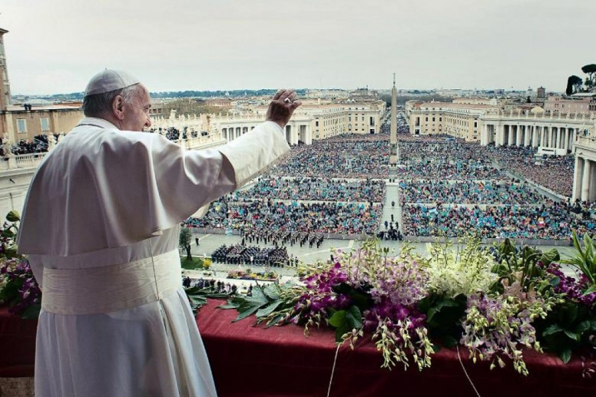 Ferenc pápa beszéde végén latin nyelvű Urbi et Orbi áldását adta Róma városára és a világra, majd hosszan kongtak a Szent Péter bazilika harangjai.