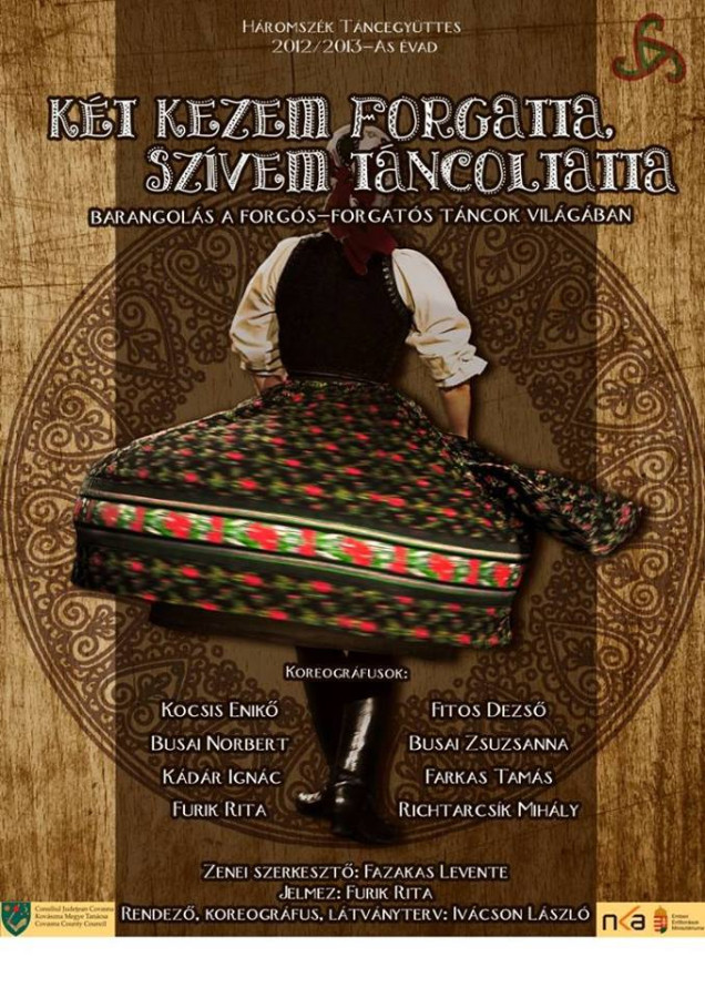 A Két kezem forgatta, szívem táncoltatta című hagyományos folklórelőadás koreográfiái a Kárpát-medencei forgós-forgatós táncok világából építkeznek. Erdélynek a barokk kor eredményeképpen ez a legnagyobb mai napig megőrzött táncöröksége, a marosszéki forgatóst például a páros táncok királynőjeként szokták emlegetni.