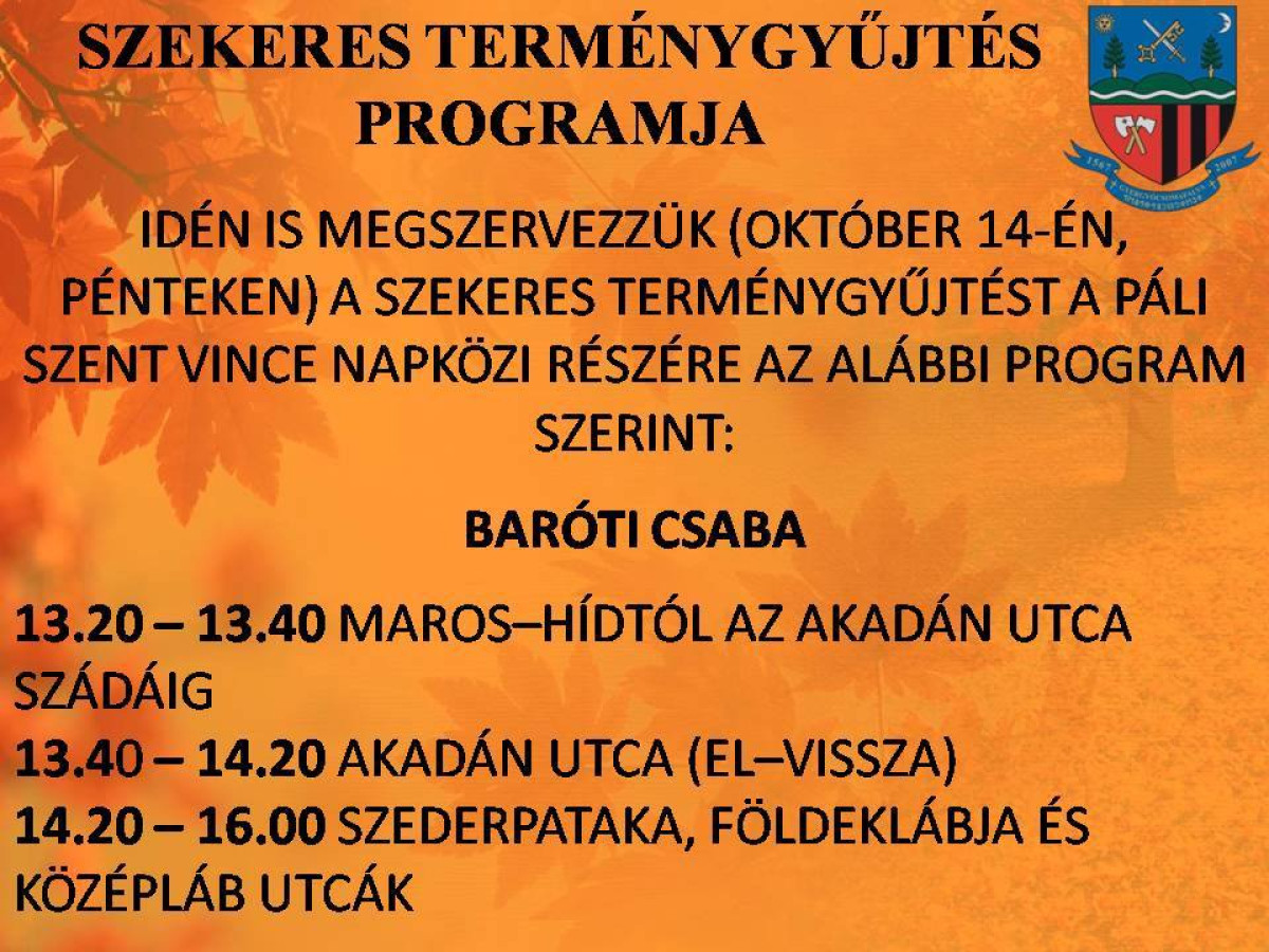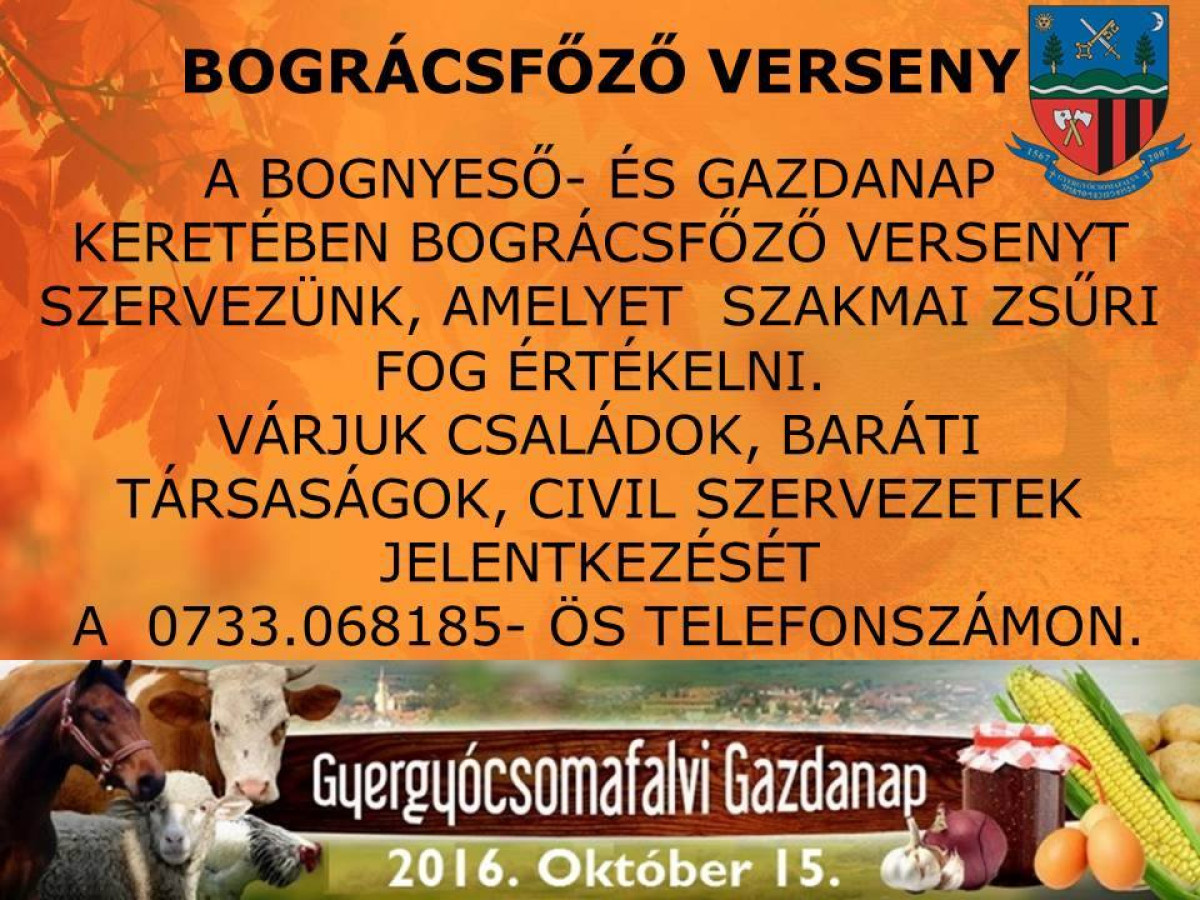 Szervezők: Gyergyócsomafalvi Polgármesteri Hivatal, Turisztikai Információs és Rendezvényszervező Iroda, Szociális Központ
