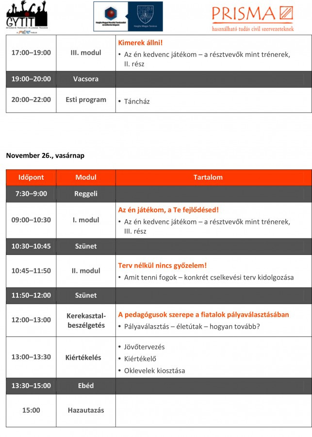 A képzésen való részvétel, a szállás és az étkezés ingyenes. A helyek száma korlátozott.