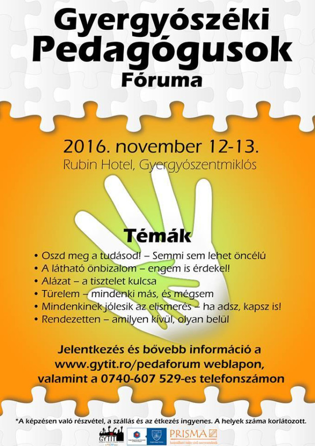 Az idei Gyergyószéki Pedagógusok Fóruma egy igencsak kényes témát fog boncolgatni. Hogyan lehet a diák tiszteletét kivívni? Egyáltalán miért is kellene egy pedagógusnak erre törekednie? Erre fogjuk idén együtt keresni a választ. Sőt, nemcsak válaszokat keresünk, hanem konkrét eszközöket kapsz arra, hogy ezt ma, a nehezen megtartható figyelem esetén hogyan tedd hatékonyabban diákjaiddal. Mit tudsz azzal a diákkal kezdeni, aki esetében úgy érzed, hogy szinte semmi és senki nem érdekli? Hogyan és miként tudsz kölcsönös tiszteletet kialakítani diákjaiddal és megértetni velük, hogy egy oldalon álltok?