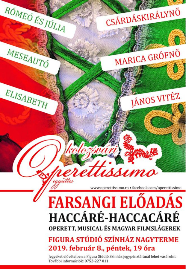 Az Operettissimo együttes ismét egy új műsorral lepi meg a gyergyószentmiklósi közönséget. A hungarikumnak minősített operett és a musical mellett ezúttal a magyar filmslágerek teszik varázslatosabbá előadásunkat.