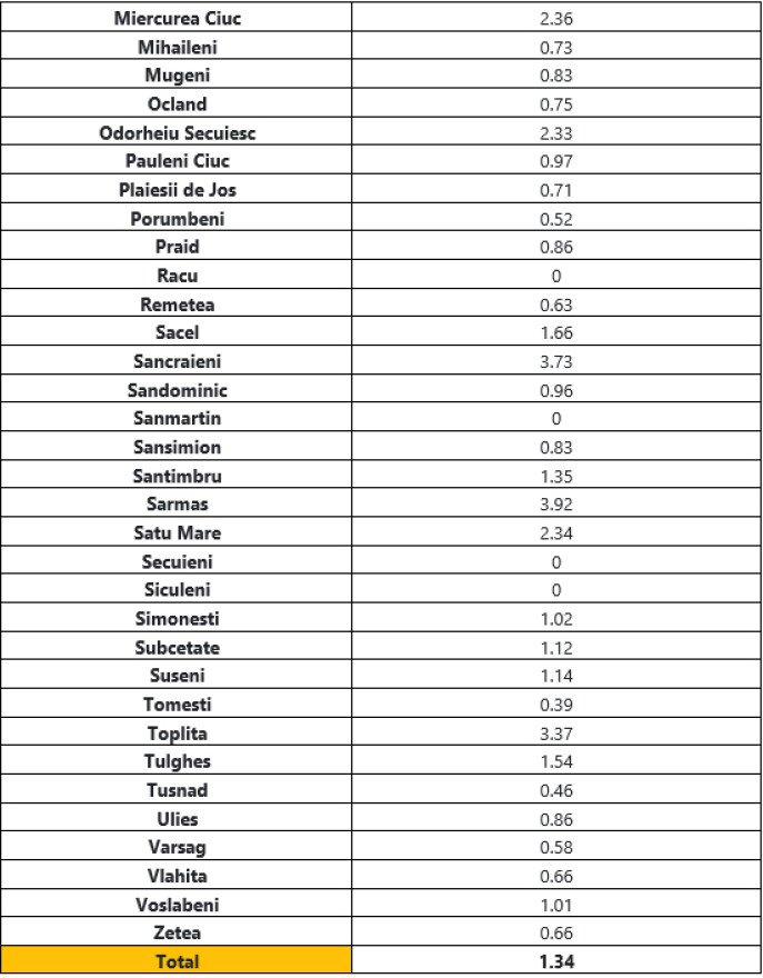 Mutatjuk az 1.000 lakosra eső esetek számát helységenként