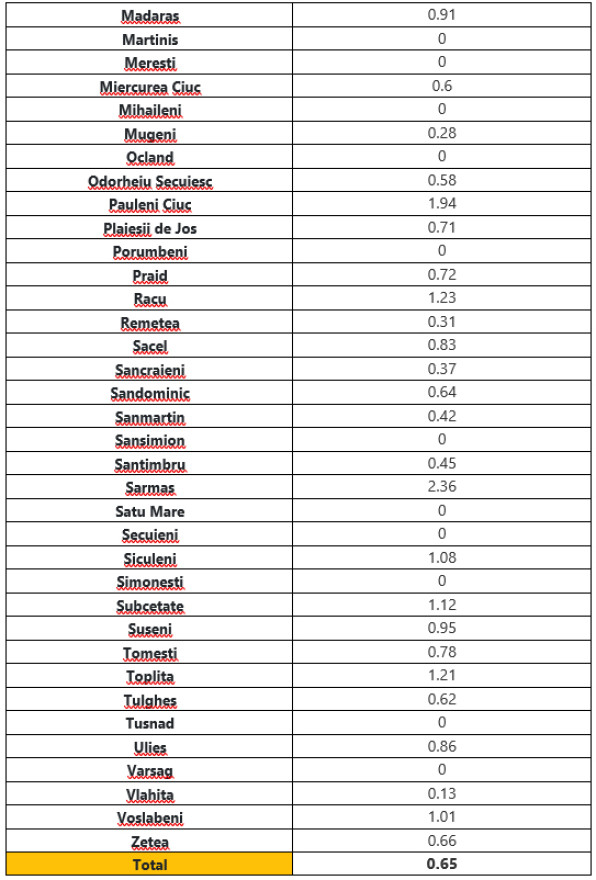 Mutatjuk az 1.000 lakosra eső esetek számát helységenként