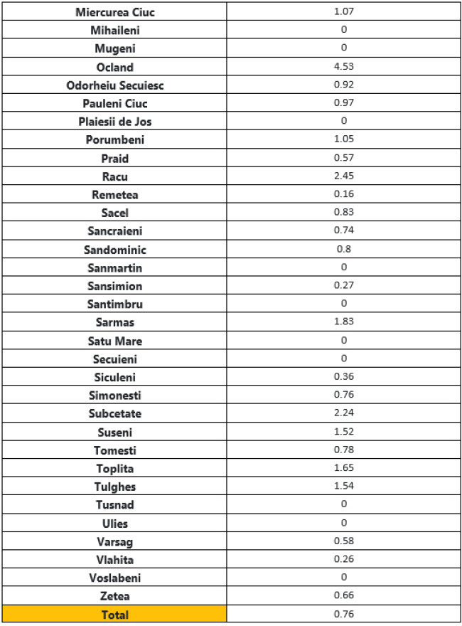Mutatjuk az 1.000 lakosra eső esetek számát helységenként