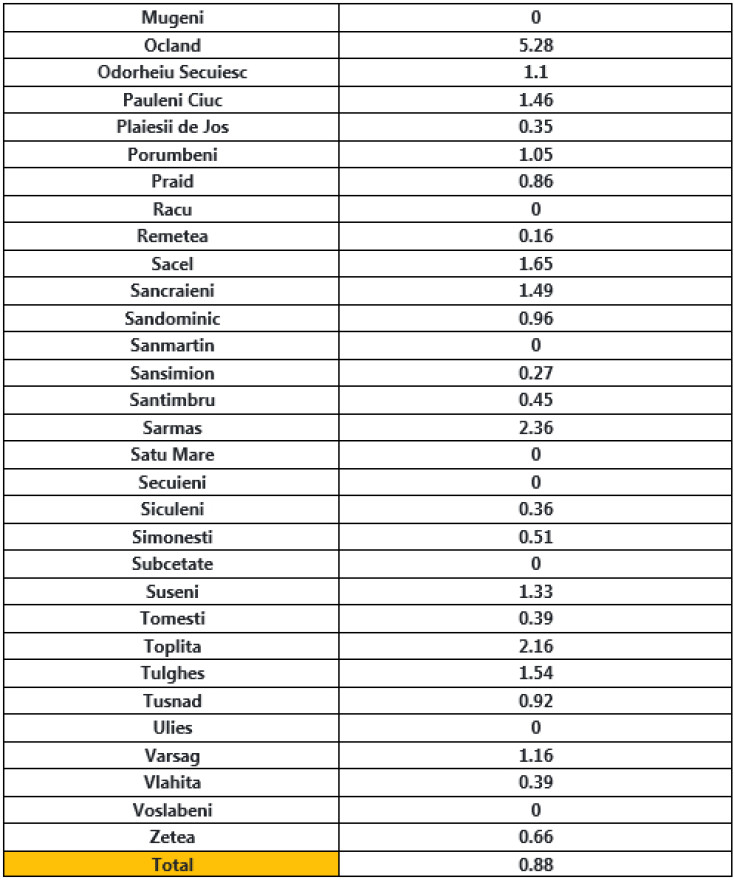 Mutatjuk az 1.000 lakosra eső esetek számát helységenként