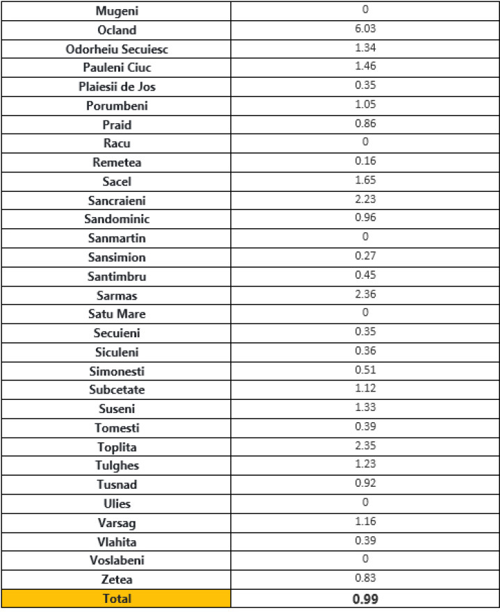 Mutatjuk az 1.000 lakosra eső esetek számát helységenként