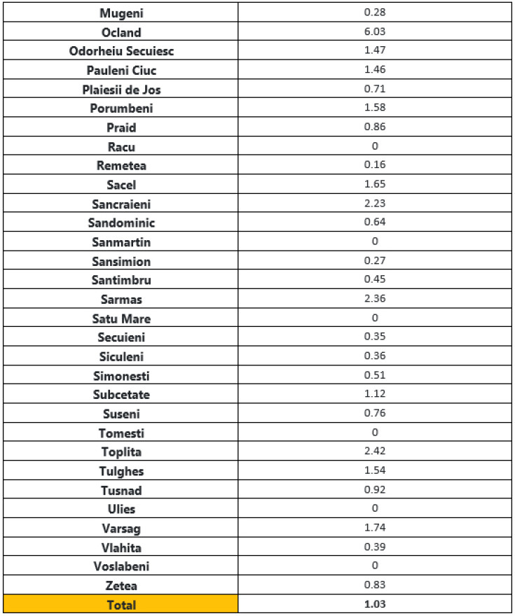 Mutatjuk az 1.000 lakosra eső esetek számát helységenként