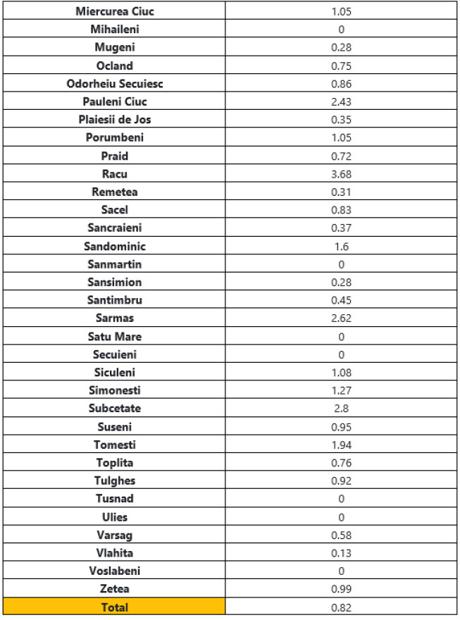 Mutatjuk az 1.000 lakosra eső esetek számát helységenként