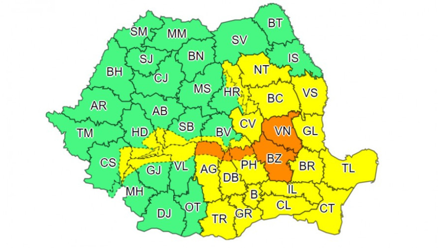 A sárga riasztás Tulcea, Konstanca, Galac, Brăila, Ialomiţa, Călăraşi, Neamţ, Bákó, Vrancea, Buzău, Prahova, Dâmboviţa, Argeş, Kovászna, Brassó, Szeben, Fehér, Hunyad, Krassó-Szörény, Mehedinţi, Gorj, Dolj, Vâlcea, Giurgiu, Ilfov megyére és Bukarestre érvényes.