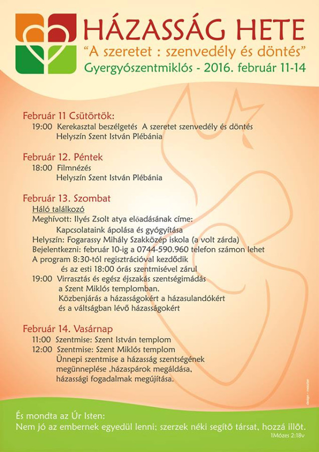Ma kezdődik Gyergyószentmiklóson a Házasság Hete mozgalom rendezvénysorozata
