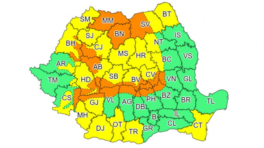 Péntek 20 órától vasárnap 20 óráig Máramaros, Beszterce-Naszód és Suceava megye hegyvidékein, 1700 méter fölött másodfokú (narancssárga jelzésű), hóviharokra vonatkozó riasztás lesz érvényben. Jelentős hóréteg képződik, a hóvihar lecsökkenti a látótávolságot.