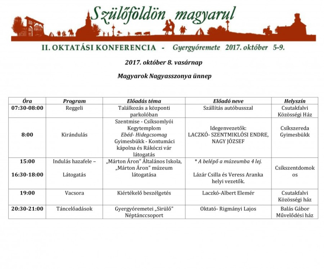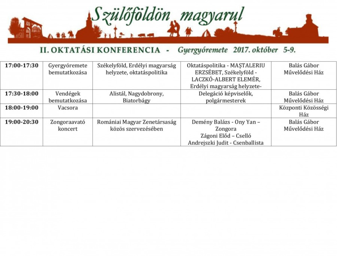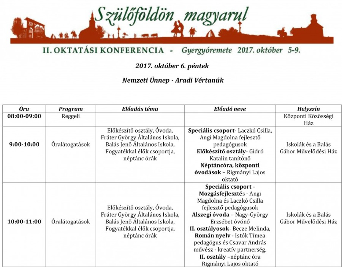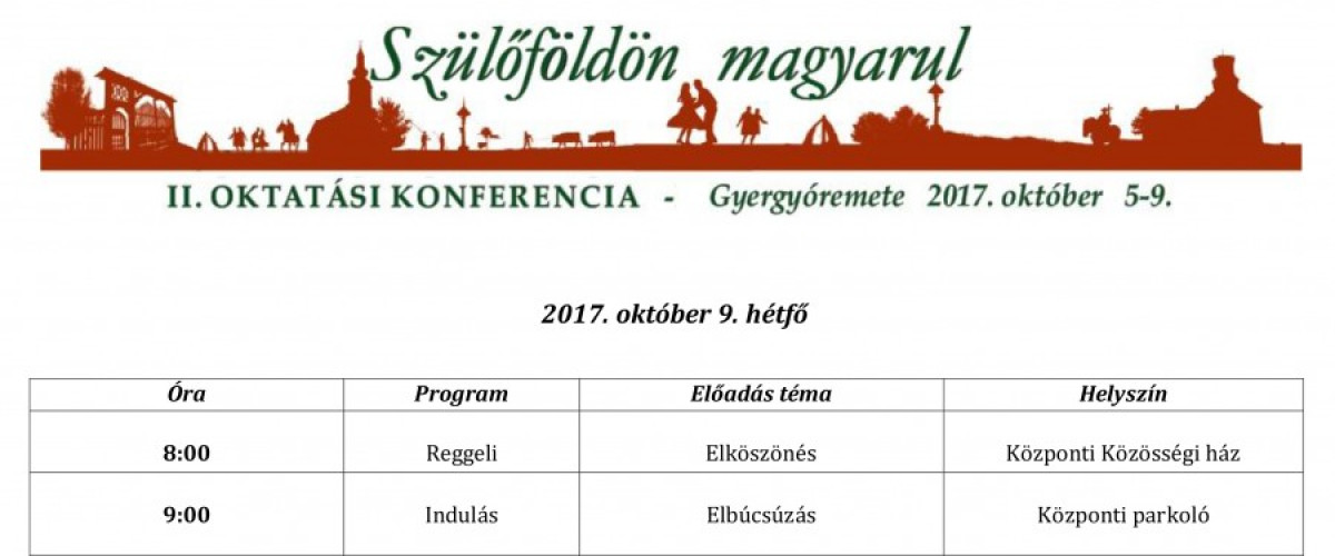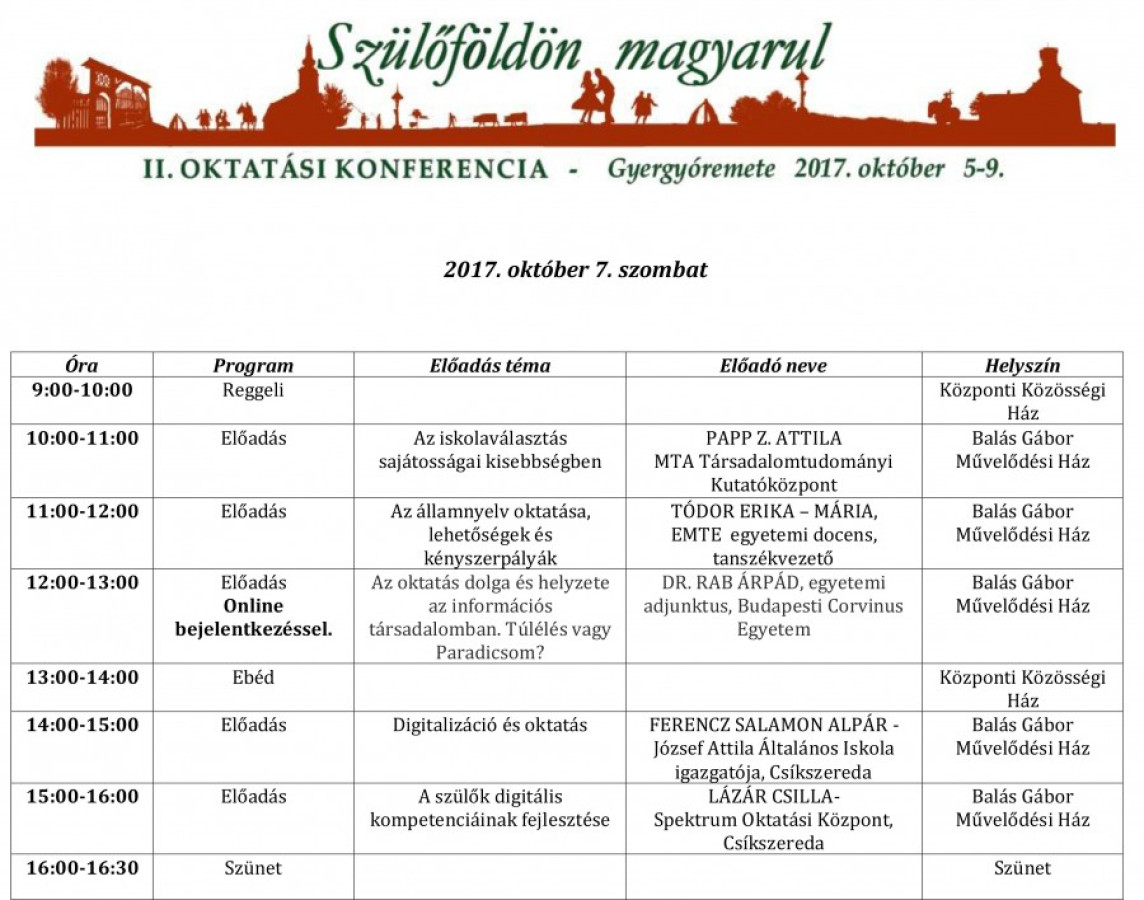 A Szülőföldön magyarul oktatási konferencia részletes programja: