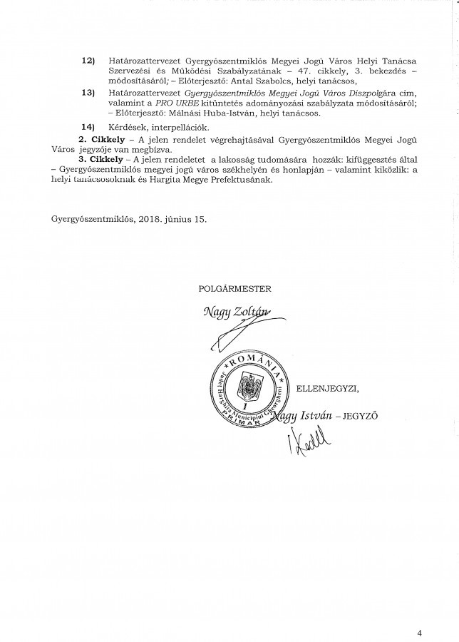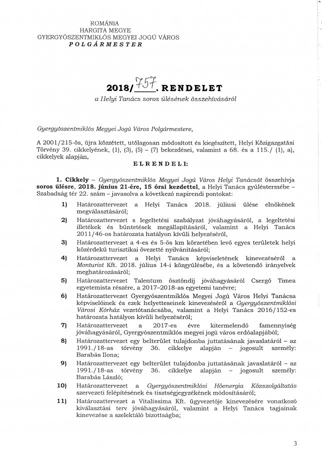 A 2018. június 21-i soros tanácsülés eredetileg meghirdetett helyszíne és időpontja is változott: a Korona termében lesz megtartva, Márton Áron utca 16., délelőtt 10:00 órakor.