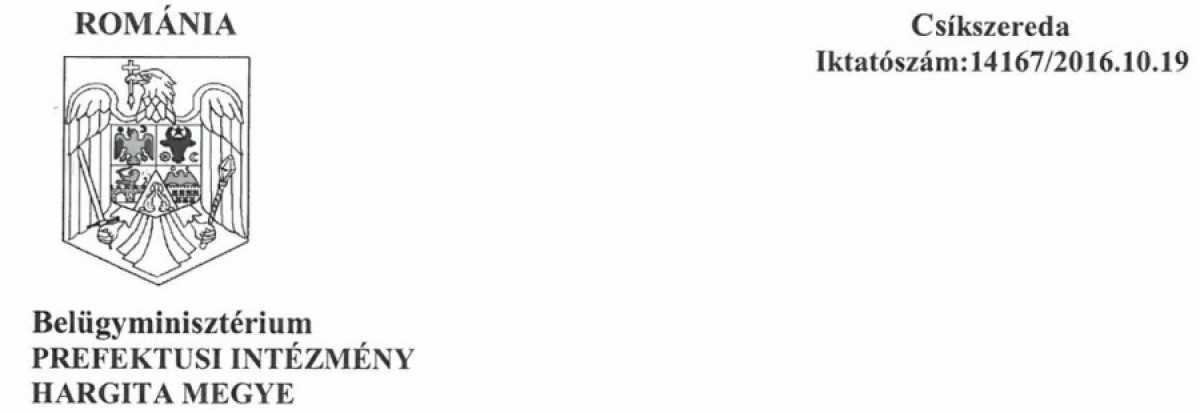 A nyilvános információkhoz való szabad hozzáférést szabályzó, 544/2001-es számú törvény alapján megfogalmazott, a Hargita megyei Prefektusi Intézményhez címzett, a 14026/2016.10.10-es iktatószámmal bejegyzett kérésére, amelyben információt kér a Hargita megyei intézményekre kiszabott büntetések helyzetéről, a kisebbségek jogainak megsértésére vonatkozóan, a következőket közöljük: