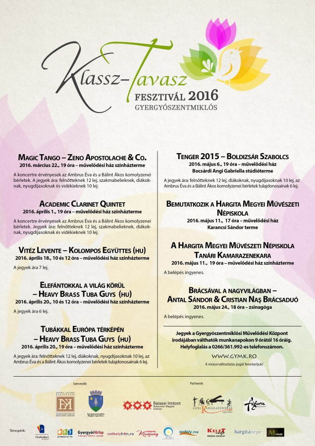 Szervezők: Gyergyószentmiklós Megyei Jogú Város Önkormányzata, Gyergyószentmiklósi Művelődési Központ