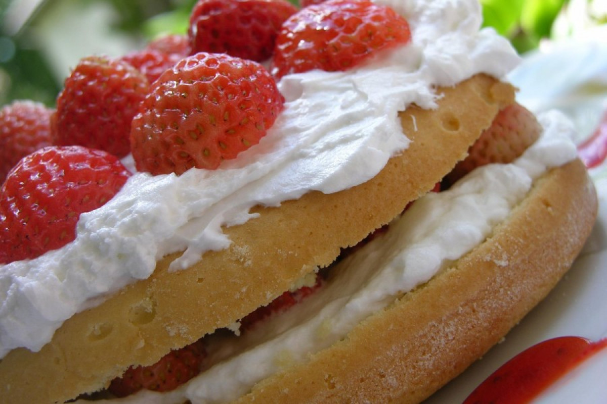 Tésztája egy tojásból (1 drb!), kis cukorból, lisztből készült piskótazsemle, tejszínhabbal és szintén aznap pirosodott eprekkel töltve. Igen- igen, pirosabbak is lehetnének, de az idei tavasztól ennyire telt. Pirosodjon inkább a gyermek füle, a sok kedves fülhúzásos köszöntéstől! 😀