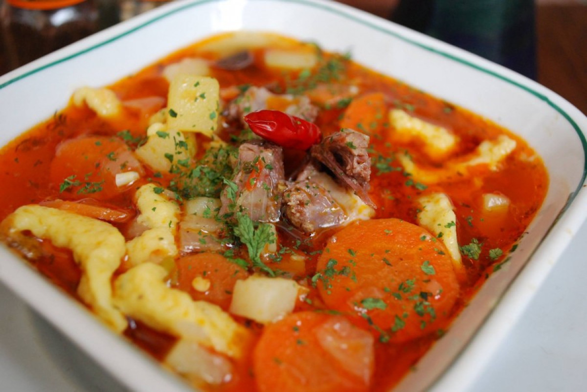 Elkészítés: Az olajon üvegesre pároljuk a hagymát, kis sóval (hogy pici levet eresszen), beletesszük a pirospaprikát, zúzott fokhagymát, borsot, köményt és a húst. Felöntjük vízzel. Ha a hús puhulásnak indul, következhetnek sorban a zöldségek. Galuskát is szaggathatunk bele, egy tojás, liszt, no meg saját ügyességünk segítségével. A leves lelke a köménymag, annak hiányában inkább neki se fogjunk a főzésének! 🙂