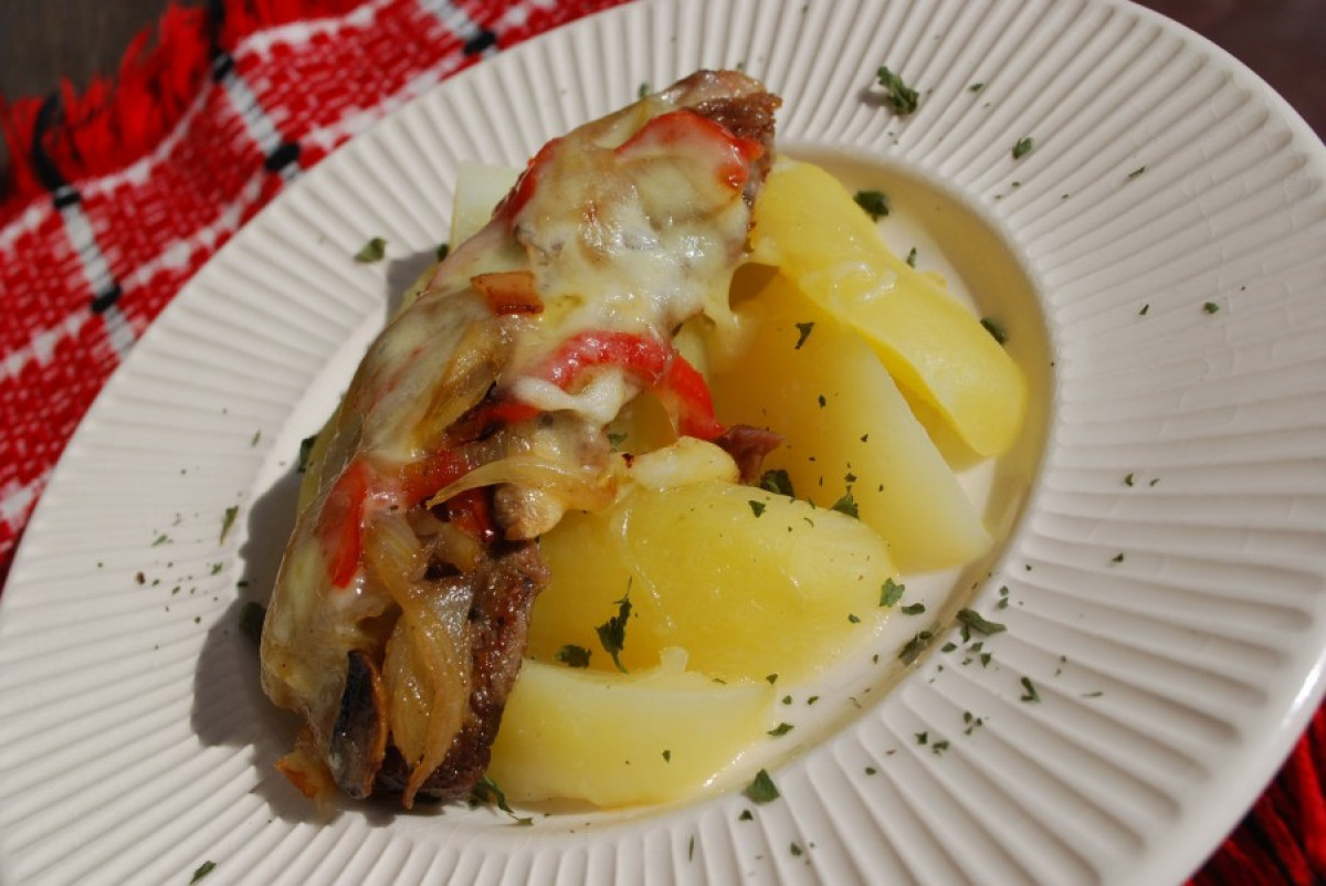 Készülhet szárnyas vagy sertéshúsból, ám mindkettőt ajánlott sütőbe kerülésük előtt picit lepirítani. A tepsi aljában elheverve betakarózhatnak sonkával, gombával, és a művelet legvégén sajttal. Most egy kis változatosságot eszeltem ki, ugyanis összedinszteltem a szalonnát, hagymát, paprikát és gombát, majd e keveréket kanalaztam a hússzeletekre. Petrezselymes krumpli társult hozzá, meg egy jó Irsai Olivér (aki minden bizonnyal egy kellemes személy, de jelzem, pohárban sem megvetendő!). ![]()