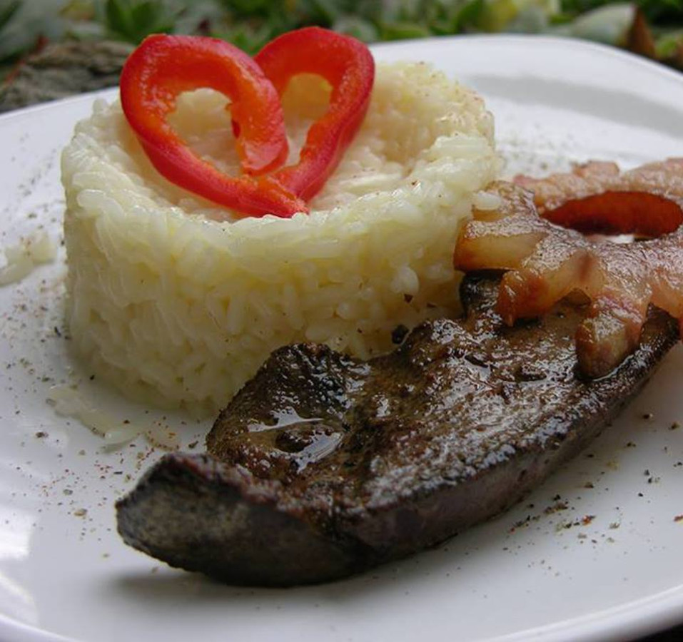 Ha netán akad olyan személy, aki a rizst nem szereti, eheti a májat párolt zöldségekkel. Ehhez először is veszünk zöldségeket (hagyma, paprika, murok, gomba – fajilag persze nem zöldség, de a barna illik a zöldhöz –, zöldborsó és kukorica), felszeleteljük julienre (a borsót, kukoricát nem), ami ugye magyarul Gyula, de konyhai berkekben csakis a francia változat használatos.