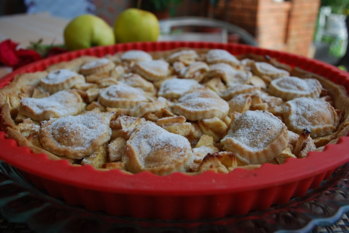 A fél kiló gyümölcsöt összekeverem 2–3 evőkanál cukorral, 1 evőkanál pudingporral, vagy kukoricakeményítővel, melynek szerepe a kifolyt gyümölcslé zselésítése. A tészta alapanyagaival (25 dkg liszt, 10 dkg cukor, 1 tk sütőpor, 10 dkg vaj, 2 tojás, 1,5 dl tejszín) nem árt gyorsan dolgozni, minél hidegebb marad a vaj, annál omlósabb lesz a végeredmény. Rákanalazom a gyümölcsre, megszórom barna cukorral, majd 170 fokon, kb. 40 perc alatt megsütöm. ![]()
