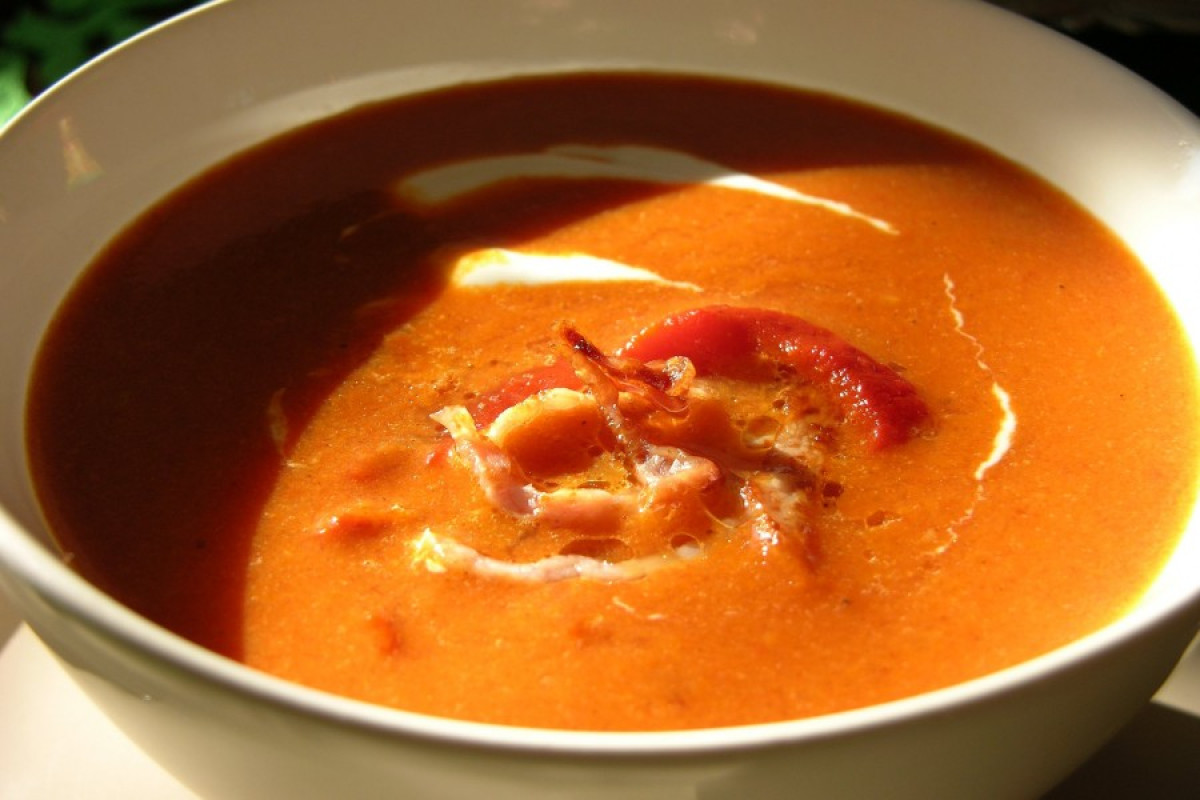 Hideg levesek időszakát érjük, és ha kellőképp tág a látókörünk (országhatárokon is átívelő), máris megtudhatjuk, hogy ezeket nem csak gyümölcsből lehet főzni. A méltán híres spanyol leves fő alkotóelemei a paradicsom (6 drb) és paprika (2 drb, ajánlottan zöld kaliforniai), melyet mi magyarok is szívesen társítunk: a lecsóban. E levesben is kiváló párost alkotnak, kígyóuborka (1 drb), hagyma (1 drb), fokhagyma (2 gerezd), egy nagy szelet száraz kenyér, 80 ml ecet (esetleg citromlé), 120 ml olívaolaj kísérőkkel. Mindezen alkotóelemeket hámozzuk, kockára vágjuk, majd egy mélyebb tálba dobálván, az ecettel és olajjal locsolva, egy órácskára a hűtőbe száműzzük. Turmixoljuk, túl sűrűnek találtatván kis vízzel hígítjuk, tetejét pirított kenyér-, főtt tojás-, sonkakockával (igény szerint bármi) megszórva, máris vidáman kanalazhatjuk a nyár e csodás termékét. 😋
