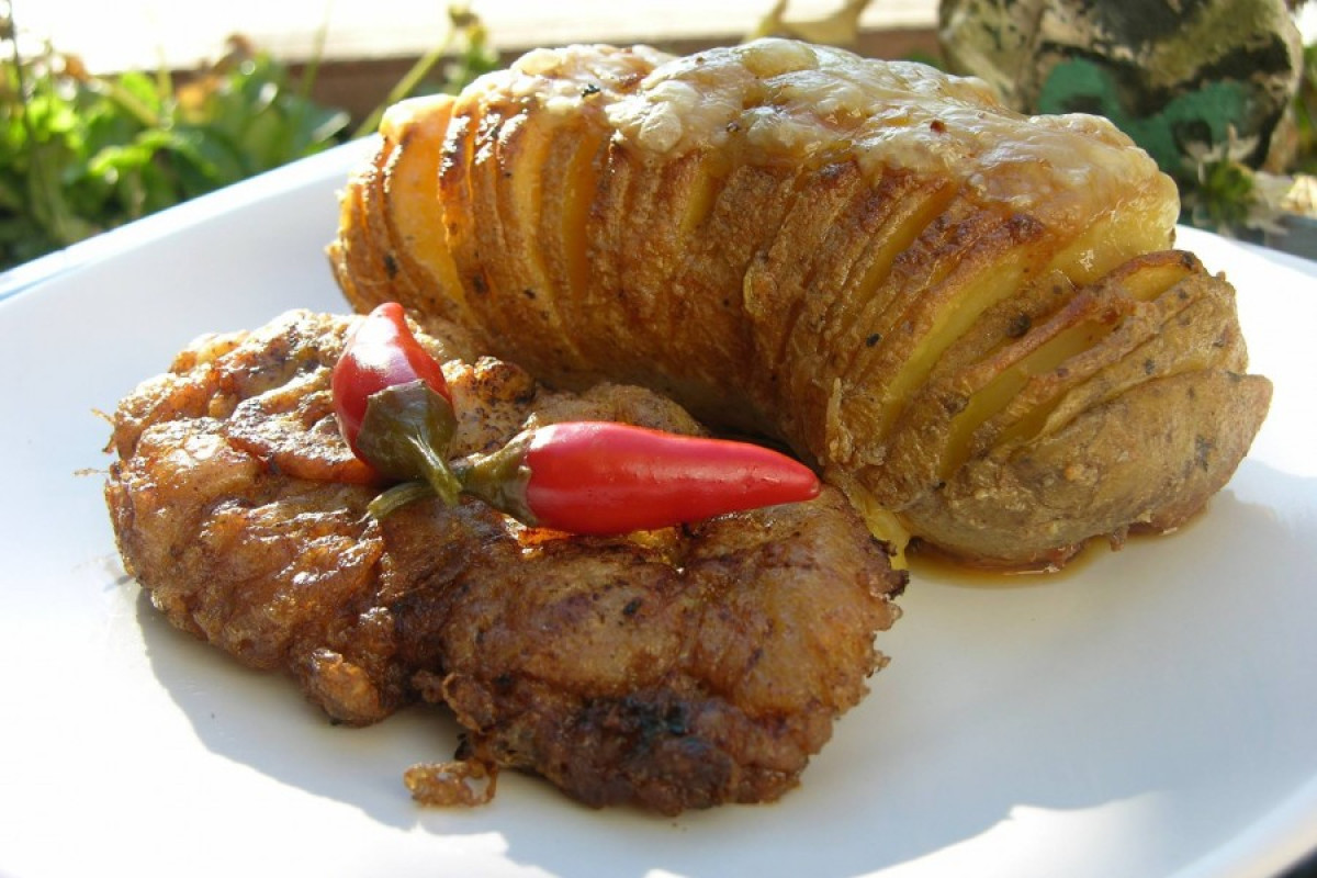 Az ünnepi asztalon, többek között, az e tájon honos, elmaradhatatlan krumpli is szerepelt, nem épp székely népi viseleteben, ugyanis Hasselback köntöst öltött. 😉 Eszünk mi persze sok sült krumplit, akár káposztalével is, de a különbség itt most abban a kis rafinált ötletben rejlik, hogy a krumplikat sütés előtt beirdalják, és a szeletek közé fűszeres olajat (fokhagyma, bors, só, köménymag, szerecsendió, chili, rozmaring, petrezselyem) ecsetelnek. Aztán burgonyánk, szeleteit sülés közben legyezőszerűen széttárva, egy igazán mutatós köretté változik. Elmaradhatatlan rántott hús háttereként, köreteként, mindnyájunk nagy örömére szolgált! ☺️