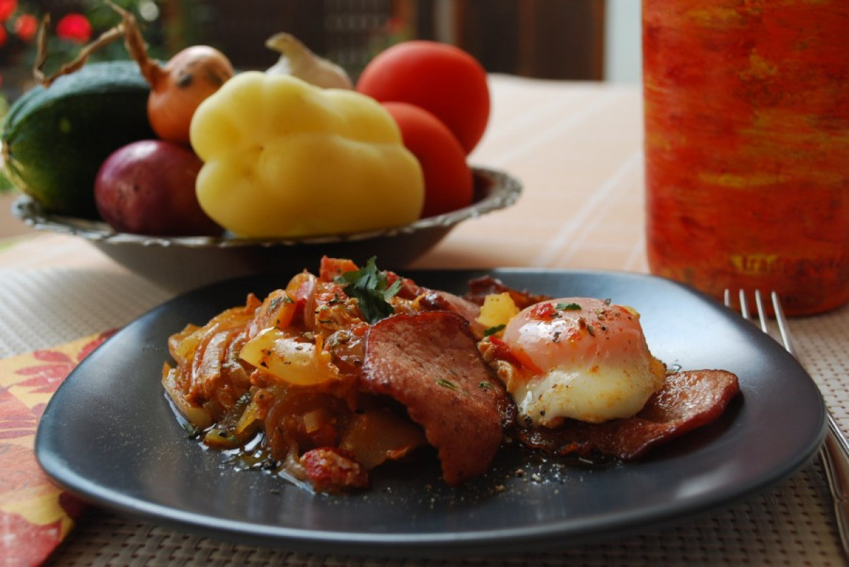 Nyári kedvencem a tökfélék családjának bármely zsenge tagja. Habár az idén a kertemben ezek nagyobbrészt csak virágot voltak hajlandóak növelni (kisütve az is igen zamatos tud lenni), azért egy pár tő termést is hozott. Így kerülhetett tányérunkba jó párszor a cukkinipörkölt nevű fantáziaételem, ami hagyma, paprika, paradicsom, murok és cukkinikockák pörkölésével állítható elő. Az eledel fontos tartozéka a kertből frissen szedett kapor és csombor ága. Igencsak gyorsan fogyó termék, bármilyen fajta fasírttal koronázva. ![]()