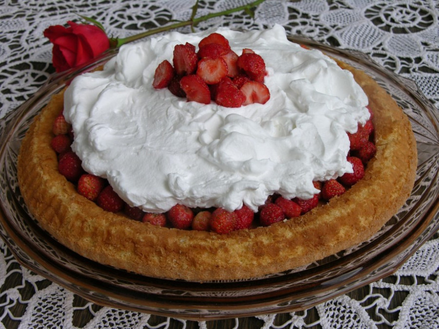 Az első szemek útja a gyomrokba és a lekvárosüvegekbe vezet, majd, ha ezek el- és megtelnek, jut belőle a fagyasztóba, meg süteménybe is. A legfinomabb epres sütemény (családi, egyhangú vélemény szerint) egyben a legegyszerűbb is: piskóta, eper, tejszínhab. A piskóta is minimális összetevőkből készül: 6 tojás, 6 kanál víz, 6 kanál cukor, 8 kanál liszt. Tortaformában sül körülbelül 20 percig, hűlés után meg rögvest ráugrálnak a kertből frissen érkezett eperszemek. A tejszínhab kanállal kerül rá, csak lazán, habzsák-spórolósan, míg olyan formát ölt, mint egy hullámzó tenger. Minimalista alkotás, egyszerű összetevőkből, csak semmi grandiózus barokk vagy rokokó cicoma, úgyis inkább nyelik, mint nézik.