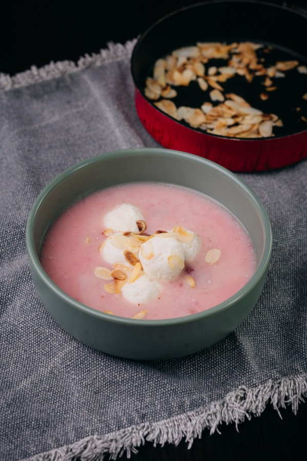 Elkészítése: A pudingot össszekeverjük a vízzel, hozzáadjuk a fűszereket, a cukrot, és megfőzzük. Beleöntjük a joghurtot és a citromlevet is, hagyjuk kihűlni, közben elkészítjük a túrógombócot. Ehhez a könnyebb változathoz folyamodunk, mely abból áll, hogy főzünk egy tejbegrízt, ezt összekeverjük a tehéntúróval és a citromhéjjal. Kis gombócokat gömbölygetünk, ezzel tálaljuk a levest, amit még pirított mandulával is megszórhatunk.
