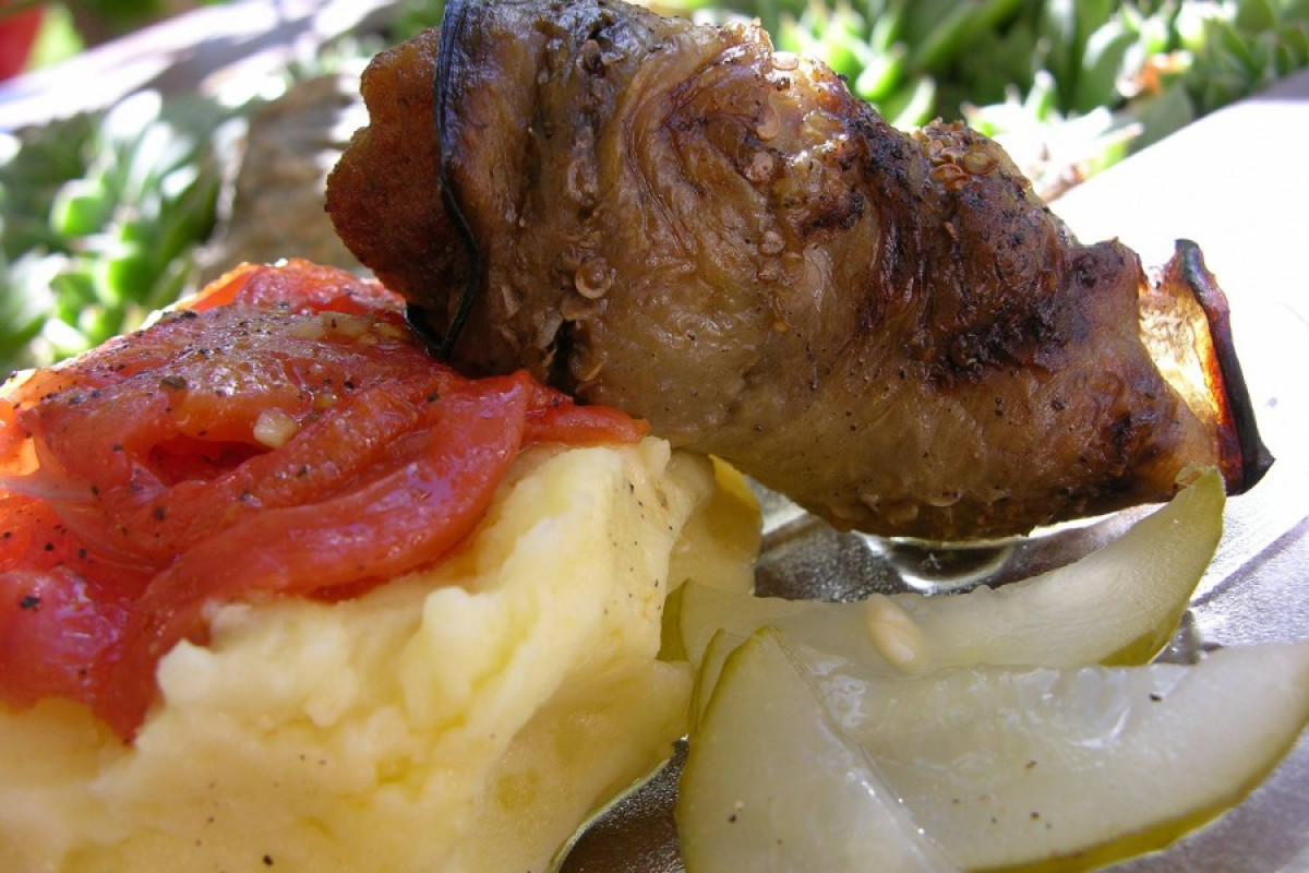 A vinettaszeletekbe göngyölt fasírtok még paradicsom-, hagymaágyra fektetve, sütőben is sülnek, az ízkavalkád tökéletesebbé tétele érdekében. A végeredmény pedig krumplipürén nyugszik, majd néhány kovászos uborka is a tányérra téved, de csakis egyéni kívánságokra. 🙂 Aztán, ha még marad a kamránkban néhány kósza vinetta, készíthetünk belőle muszakát, ami a Közel-Kelet vinettaalapú, húsos főétele. Vagy esetleg alkothatunk ratatouille-t, francia lecsót, avagy escalivada-t, a katalán testvérét. És ne feledkezzünk meg a görög joghurtos vinettáról sem: sült vinettakockák, fokhagyma, joghurt, só, bors, pici olaj.