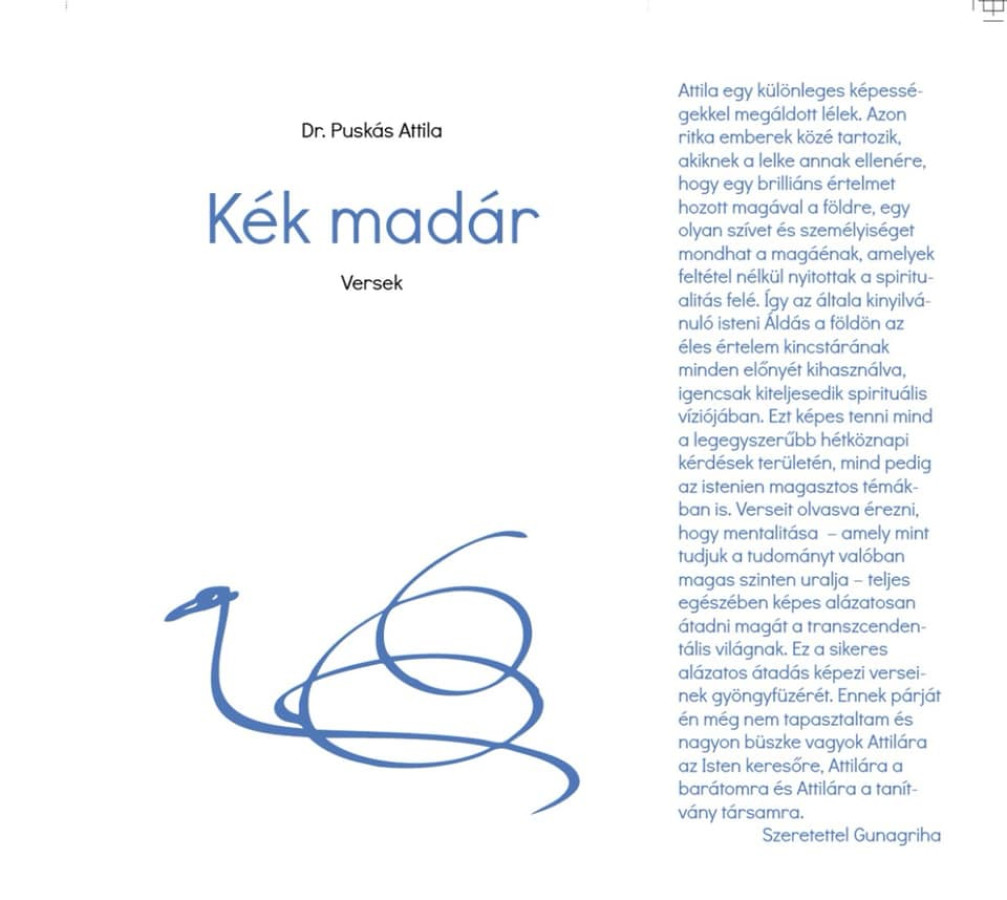 2018 őszén jelent meg dr. Puskás Attila új verseskötete Kék madár címmel. Ennek bemutatója lesz Gyergyóditróban, a Művelődési Ház éttermében 2019. január 19-én, szombaton 16 órától.