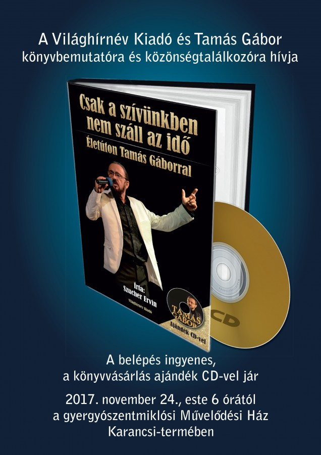 Szucher Ervin írt Tamás Gábor erdélyi származású magyar könnyűzenész, népdalénekes életútjáról könyvet. A könyvbemutatón nemcsak a könyv és szerzője, hanem maga az alanya, Tamás Gábor is jelen lesz. Lehet faggatni, majd dalra fakasztani! 🙂 Beszédes, közvetlen, barátságos és jó ember. Azon kívül meg szereti a Hargitát! 🙂