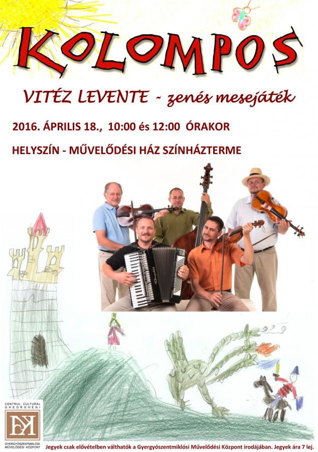 A Klassz–Tavasz Fesztivál keretében a Kolompos együttes Vitéz Levente című zenés mesejátékára várjuk a gyerekeket április 18-án, hétfőn 10:00 órától és 12:00 órától a gyergyószentmiklósi művelődési ház színháztermébe.