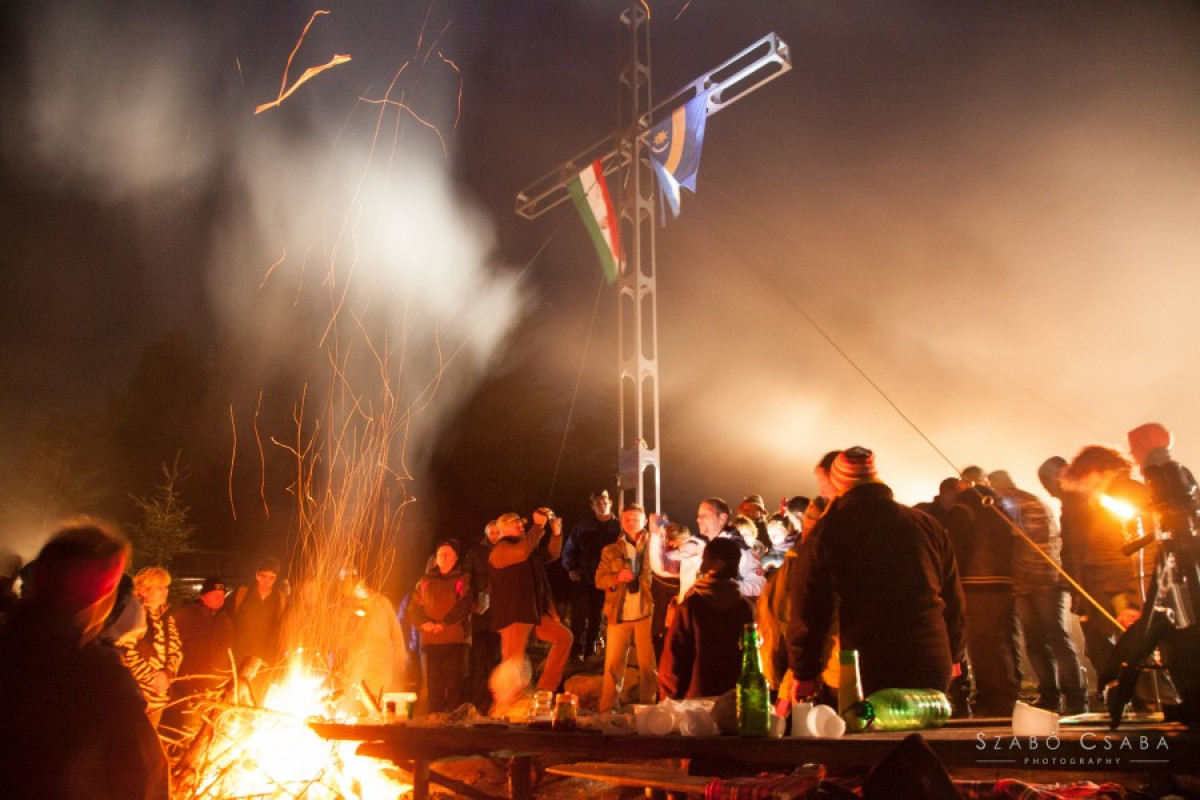 A sűrű ködben, a Szent Anna-kápolnánál rakott máglya időnként fel-felparázsló pontja erősítette bennünk a tudatot, hogy nem vagyunk egyedül, és Székelyföldön, Erdély-szerte, valamint a határon túl is soknak dobban a szíve a miénkkel egyszerre.