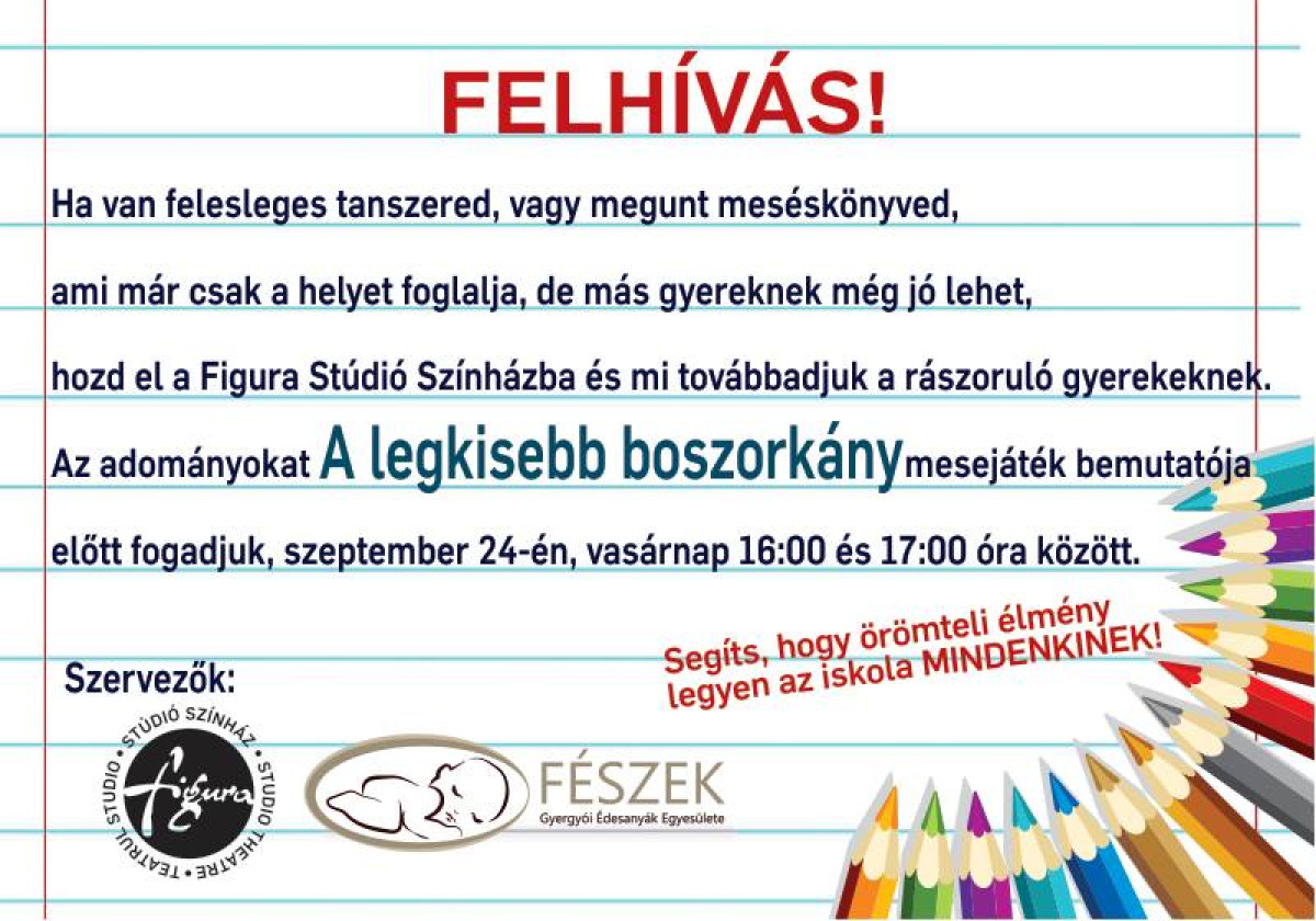 Az évad első bemutatójára készül a Figura, Nagy Regina rendezésében A legkisebb boszorkány című gyerekelőadást szeptember 24-én, vasárnap délután 17:00 órától láthatja először a közönség. A produkció Lázár Ervin azonos című meséje nyomán készült, a Figura társulatára írt színpadi adaptáció szerzője Demeter Kata, dramaturg.