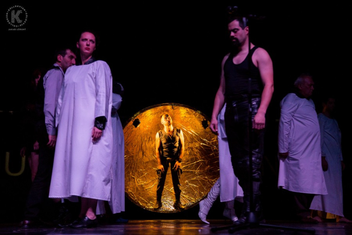 Závada Péter Je sui Amphytrion című drámájának felolvasását a bukaresti Givulpen Színházi Társulat kék/narancssárga című roma kisebbségi témát boncolgató előadása követte október 17-én.