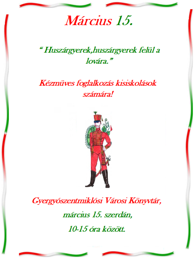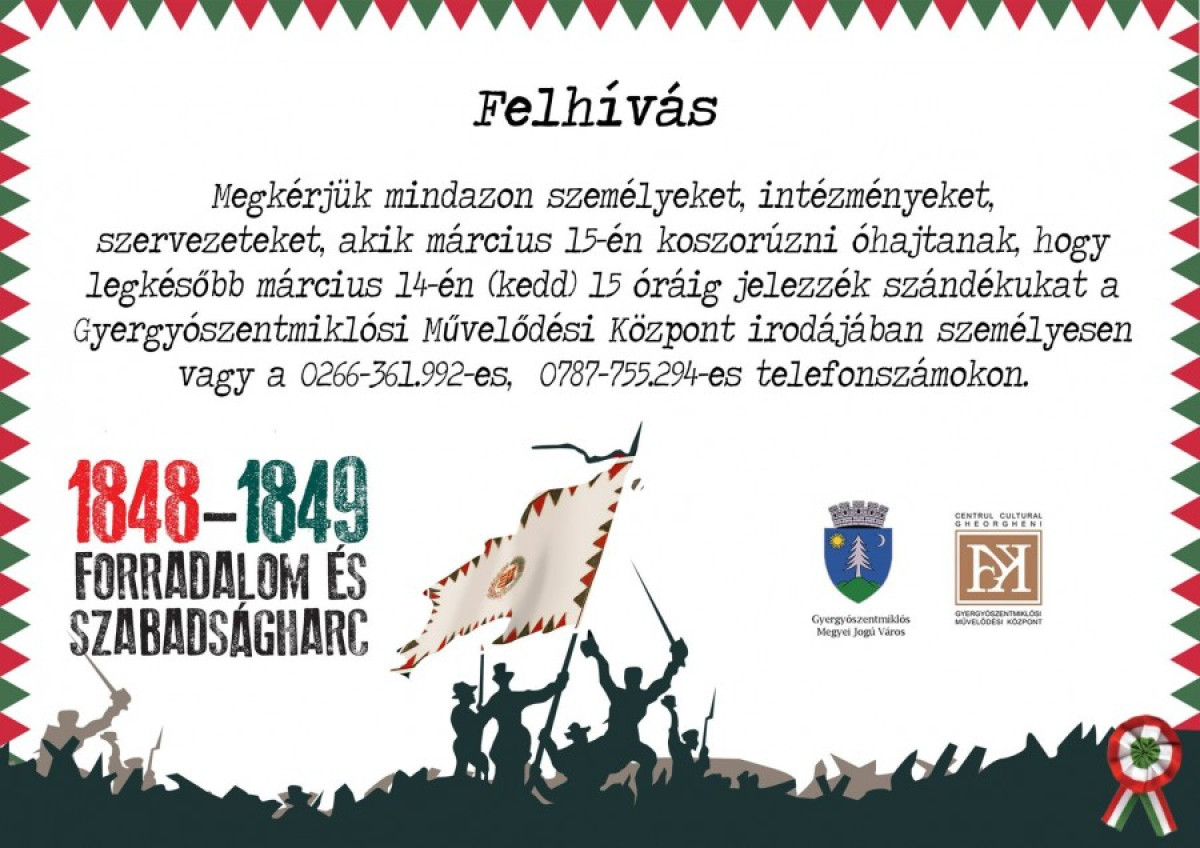 Ó, nagy nap, szép nap, légy örökre áldott! címmel ünnepi megemlékezést tartanak a Vaskertes Általános Iskola dísztermében március 15-én 11 órától.